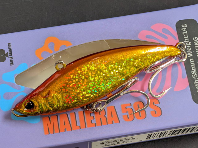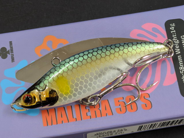 ボディーを小さくする事でルアーの潜ろうとする力を抑えて、干潮から上潮にさしてくる魚にアピールする様に、MALIERA68Sより通常スピードでのリトリーブ時ではウォブリングを、スローリトリーブ時のフラつきを少し強めています。