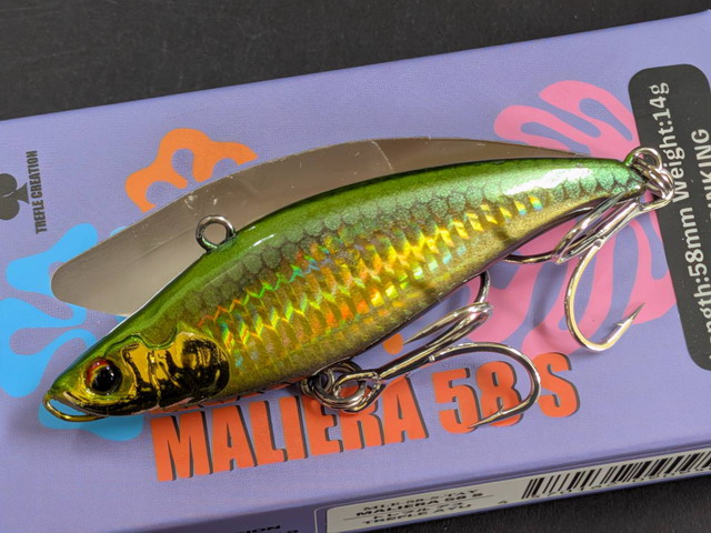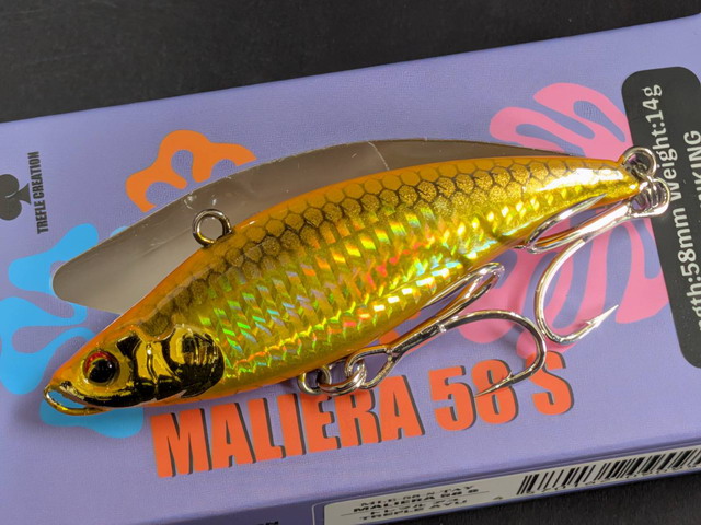 キャスタビリティーや、レンジキープ能力など、マリエラ68S同様に設計するため、総重量を58mmのバイブレーションプラグとしては重た目の14gにしてあります。