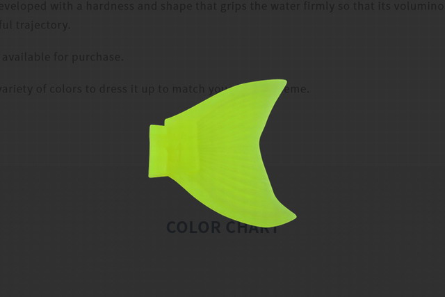 ボリュームと重量のあるボディが美しい軌道を描くよう、水をしっかり掴む硬さと形状に開発されたこだわりの一品。