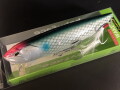 ノーマルただ巻きで水面に出るテールが、絶妙なボディーサイズと浮力バランスで強く水を押し、そこで起きる表層V字引き波によりフィッシュイーターが我慢できずに激しくバイト。