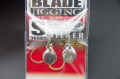 小型ジグのリアに装着。高速リトリーブではボールベアリングの回転性能によるキラメキと振動によりサワラへのアピール力抜群。高速巻きだけでなくジャークやストップ、フォールを入れる事により青物、マダイ、根魚もターゲットに